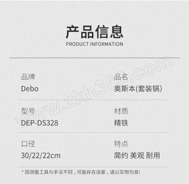 | 核心规格 | 炒锅30cm 汤锅22cm 煎锅22cm 精铁 米白色 3L+1.4L+2.8L |