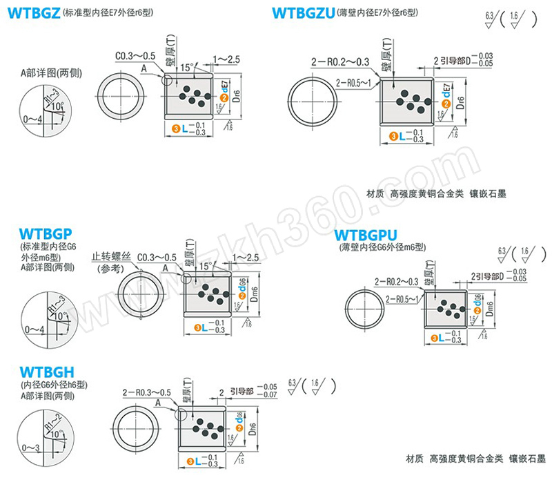 | 产品名称 | 无油衬套 铜合金直柱型 标准/薄壁 内径E7外径r6/内径G6外径h6/内径G6m6 |