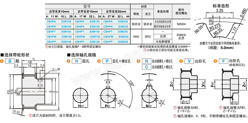 | 产品名称 | 高扭矩同步带轮 S5M型 B形 新JIS键槽孔+螺纹孔 |