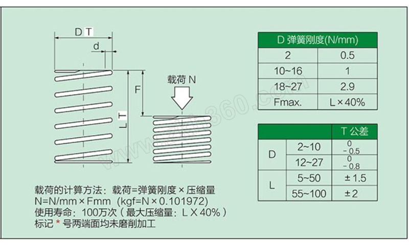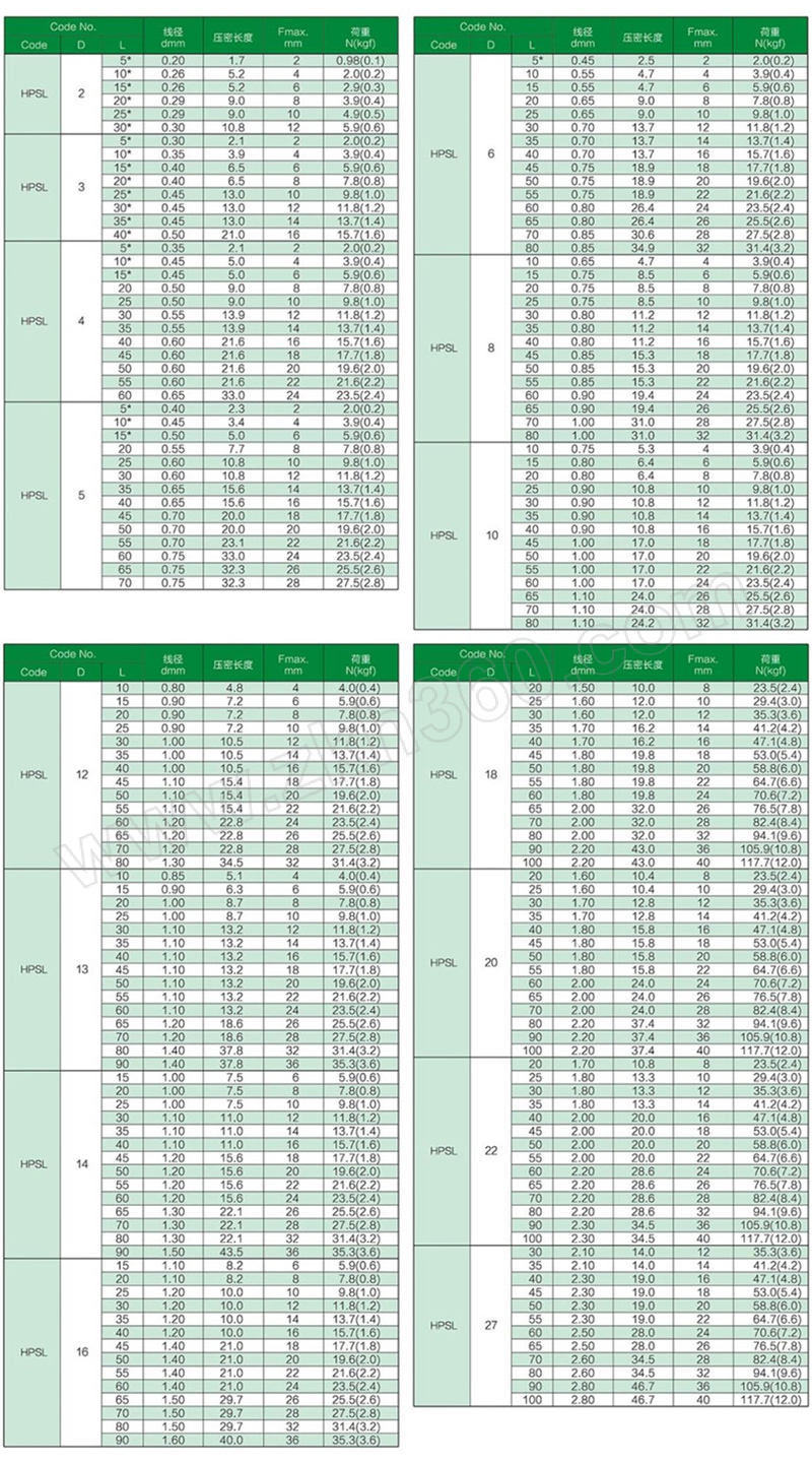 | 产品名称 | 压缩弹簧 外径基准型 HPSL 允许位移量Lx40% |