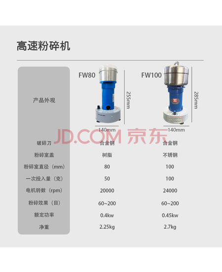 泰斯特粉碎机研磨机药材田七珍珠砂石实验粉碎工业 FW80