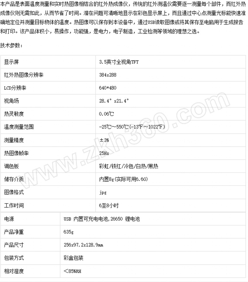 | 成像像素 | 384×288 |