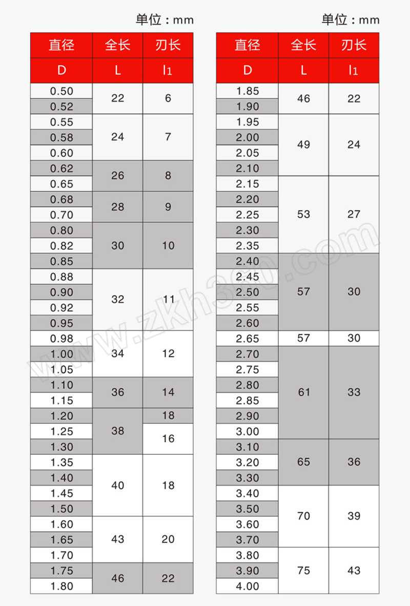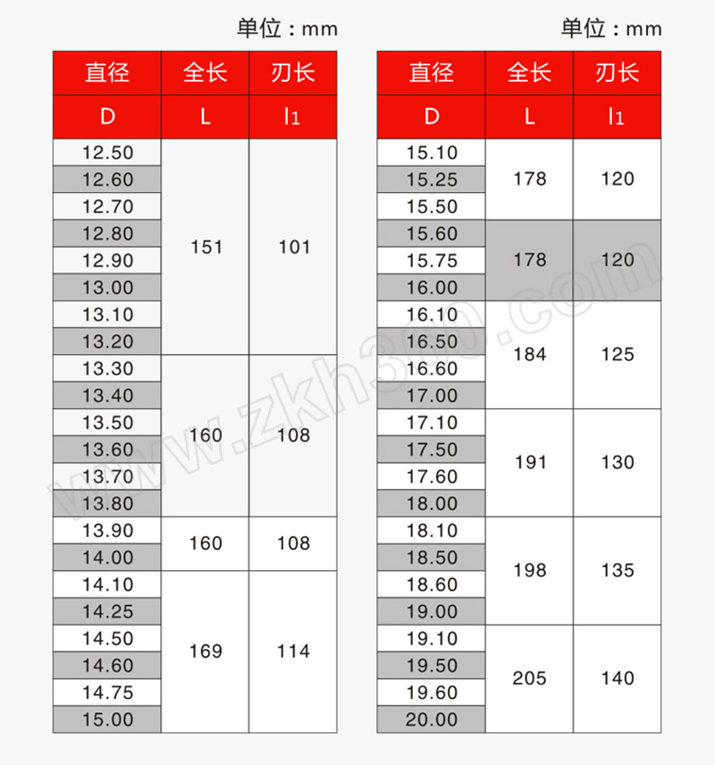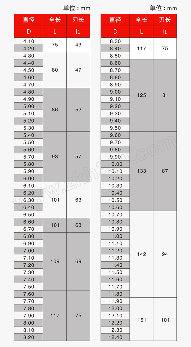 | 刃径(") | 不适用 |