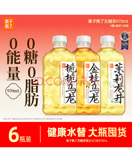 果子熟了 无糖茶 混合三口味 0糖0脂0卡 970mL*6瓶 大瓶整箱热门商品