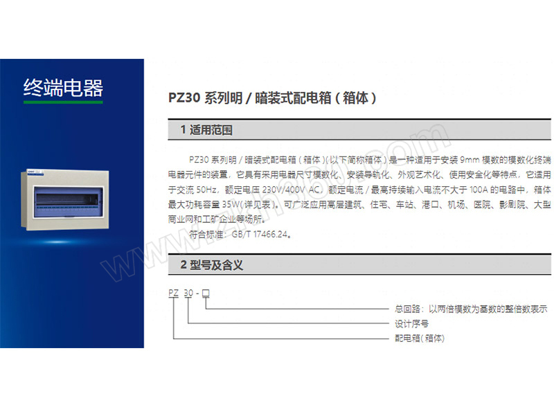 | 制造商型号 | PZ30-15回路的塑料面板 |