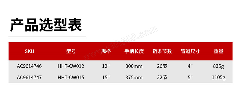 ·优质碳钢手柄,整体热处理,齿部感应淬火。 ·独特齿形钳口,可正反转动,高强度重型链条,坚固耐用。