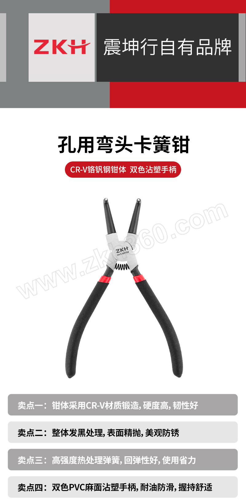 | 产品名称 | 专业级双色沾塑柄孔用弯头卡簧钳 |