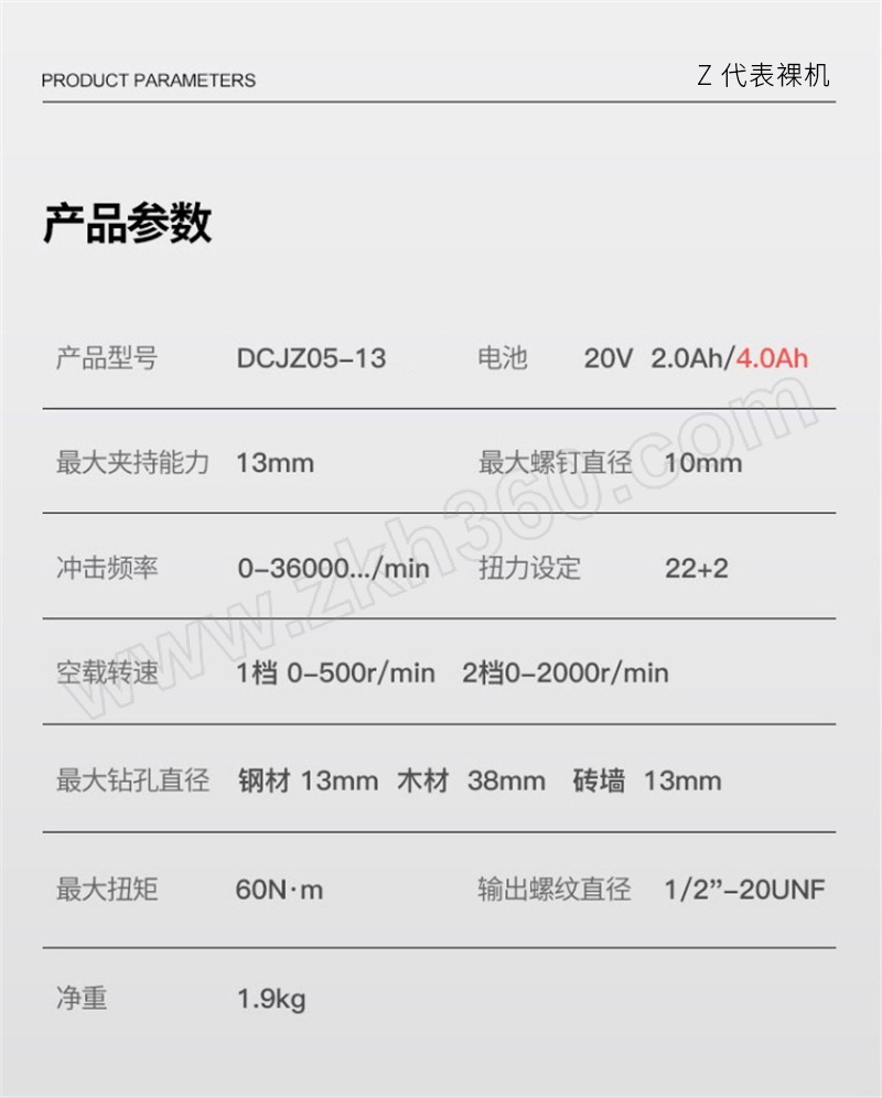 | 最大钻孔直径(金属/木材) | 13/38mm |