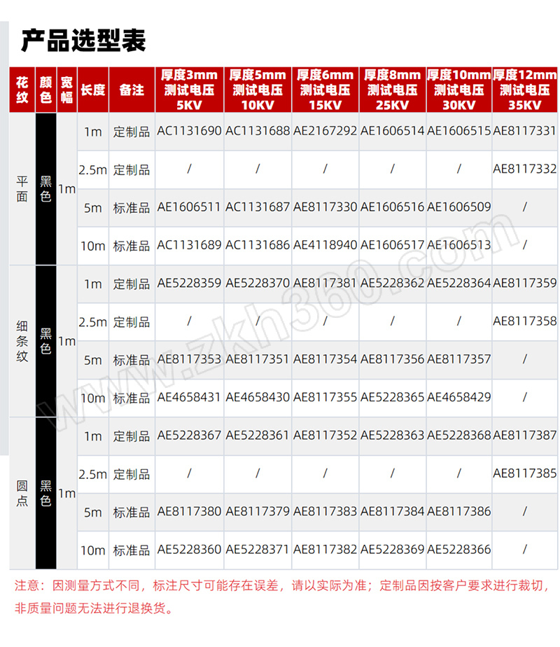 | 核心规格 | 1×10m 黑色 厚8mm 测试电压25kV |