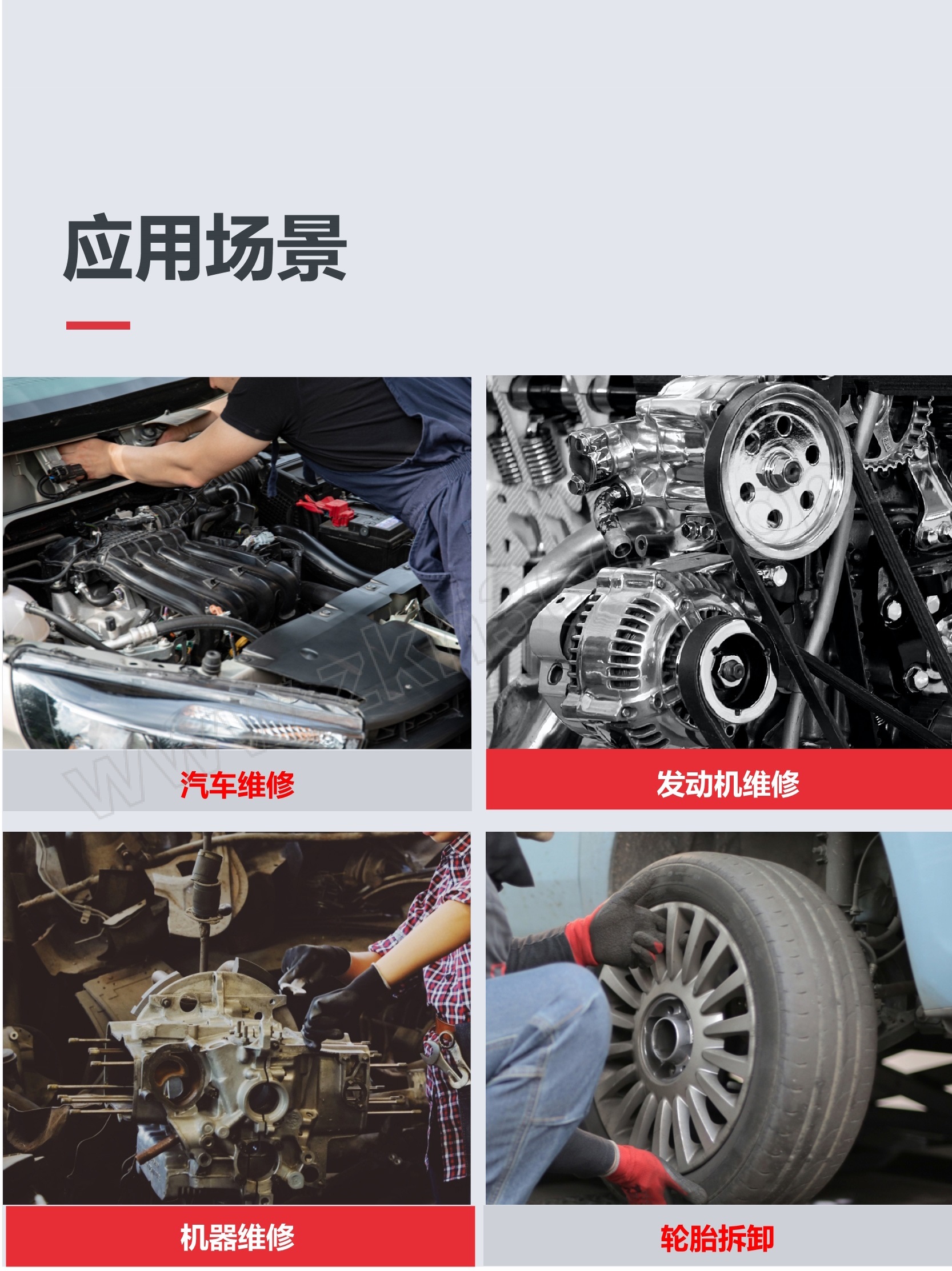 ·适用于汽车维修,发动机维修,机器维修,轮胎拆卸等。