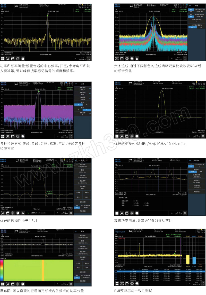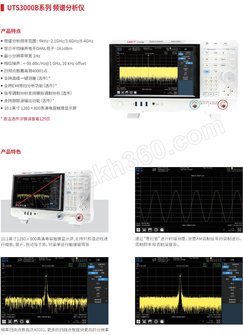 | 核心规格 | 9kHz~8.4GHz 相噪-98dBc/Hz RBW 1Hz~3MHz 平均噪声-161dBm 扫描点数40001 10.1英寸TFT LCD电容触屏 |