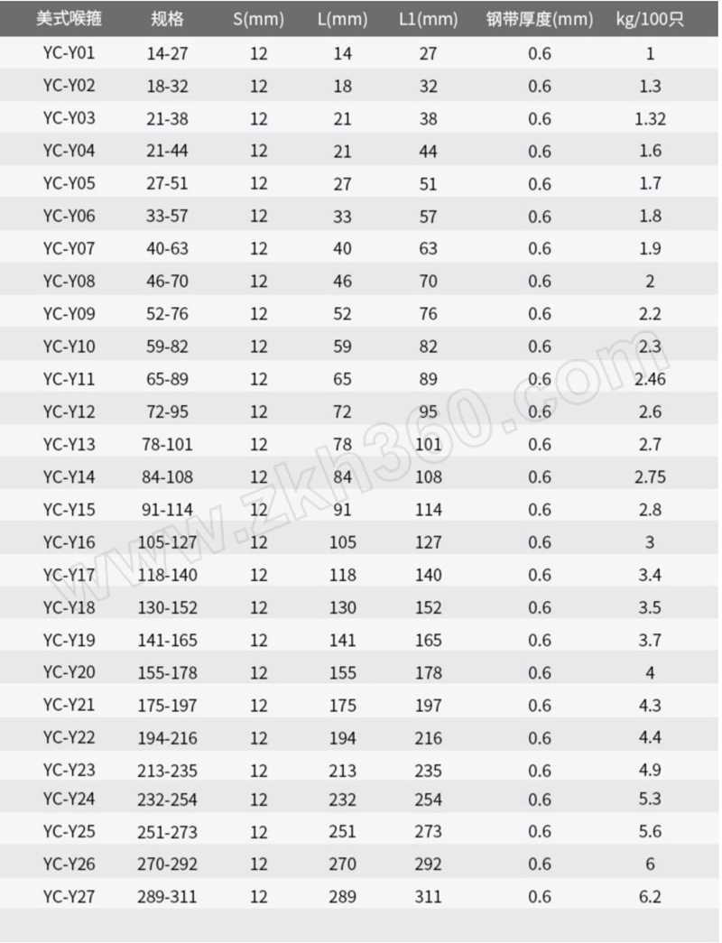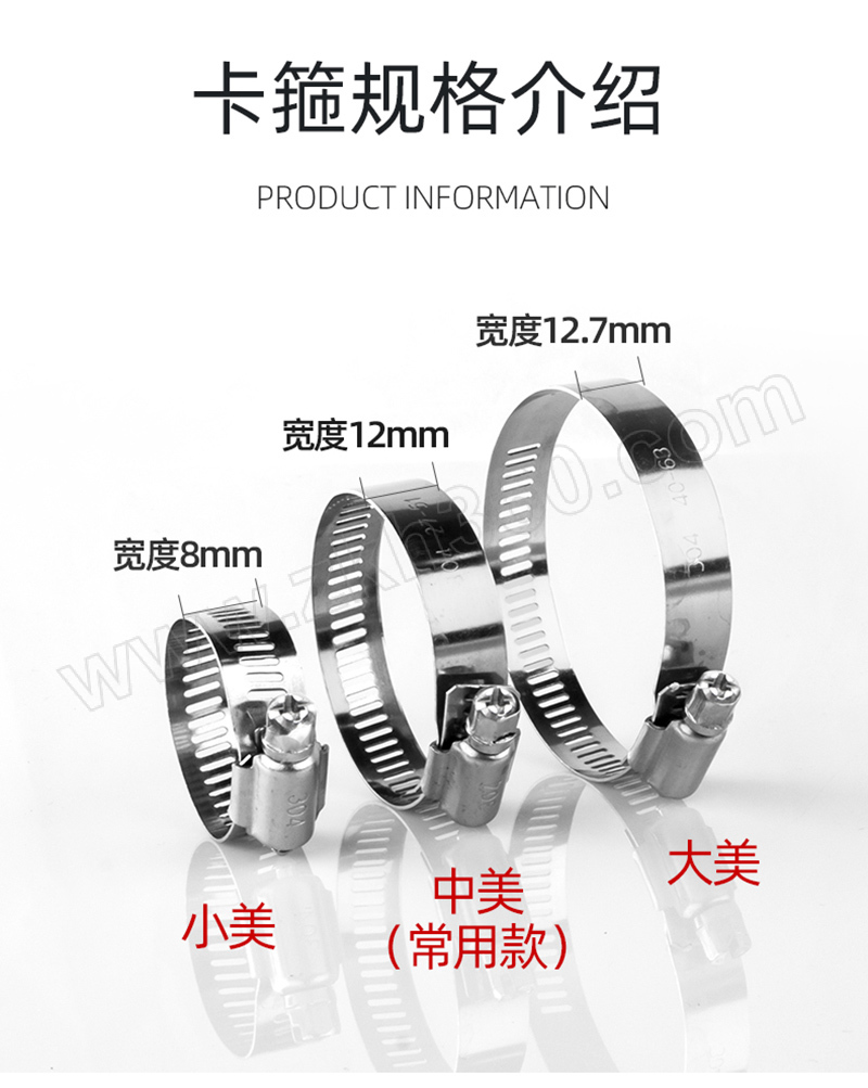 | 产品名称 | 似JB/T8870 美式喉箍 不锈钢316 本色 带宽12mm |