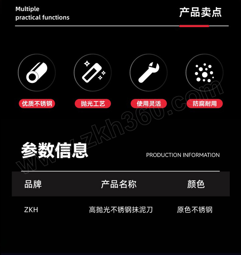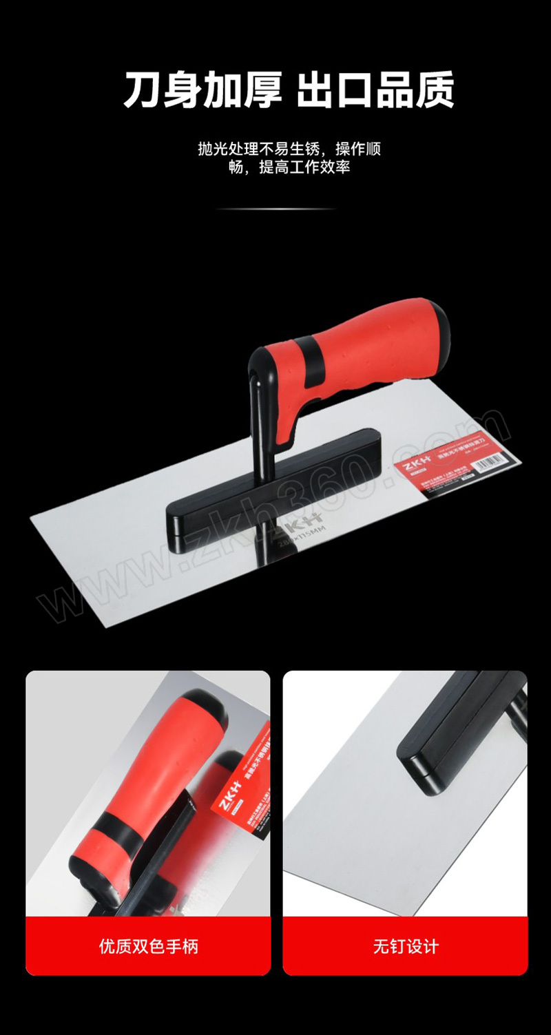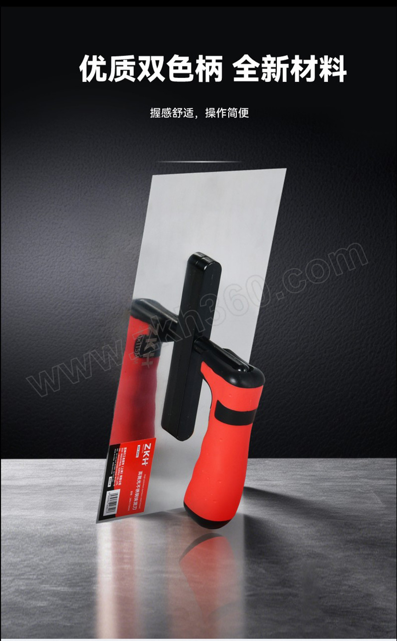 ·PP/TPR双色塑柄握感舒适, ·不锈钢刀片全面镜抛更耐用; ·连接杆表面喷塑处理美观防锈。