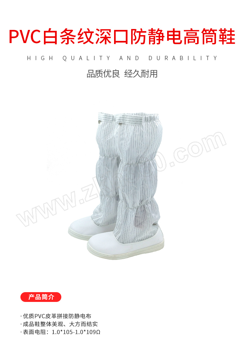 | 产品名称 | PVC白条纹深口防静电高筒鞋 |
