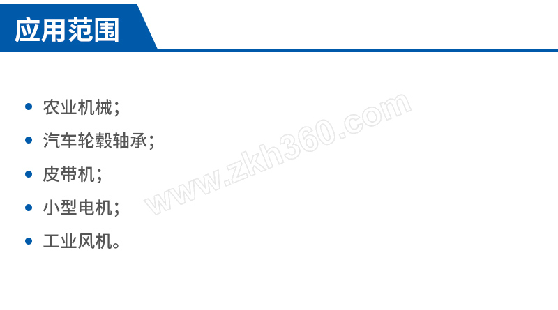 ·农业机械 ·汽车轮毂轴承 ·皮带机 ·小型电机 ·工业风机