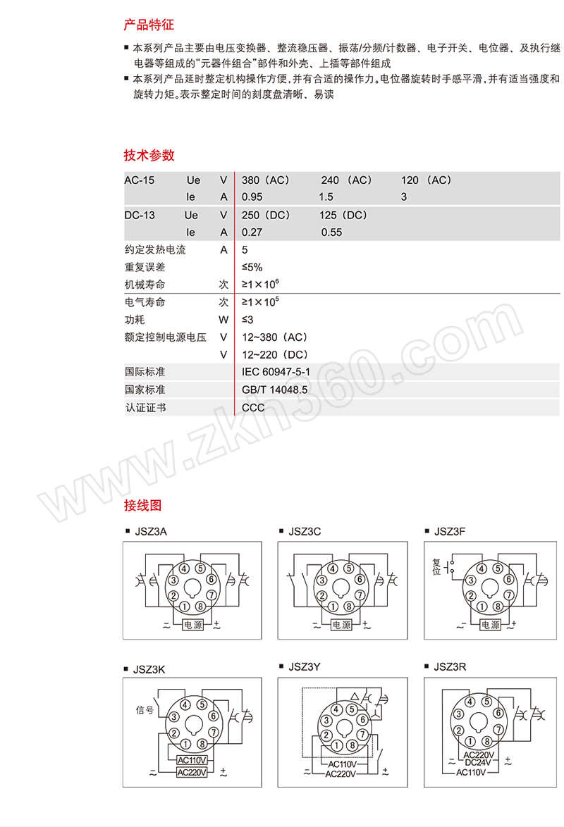 ·本系列产品主要由电压变换器、整流稳压器、晶体振荡/分频/计数器、电子开关、拨码开关、及执行继电器等组成的“元器件组合”部件和外壳、上插等部件组成 ·本系列产品采用集成电路、晶体振荡器,用拨码开关进行时间整定,延时范围宽、整定直观、使用方便、功耗小、寿命长,具有较高的延时精度和较强的抗干扰能力