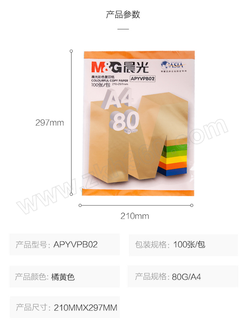 | 核心规格 | 橘黄色 A4 80g 100张装 |