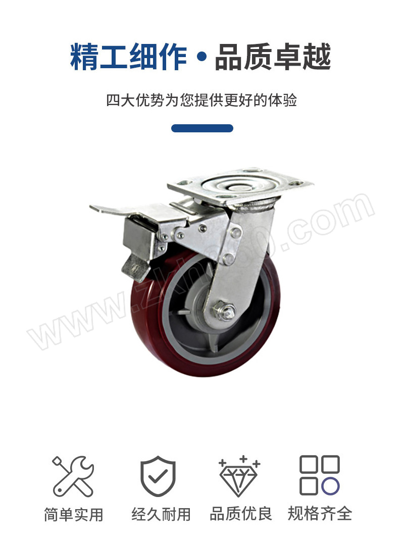 | 产品名称 | 4" PU聚氨酯 载重300kg 万向刹车 中/重型脚轮 |