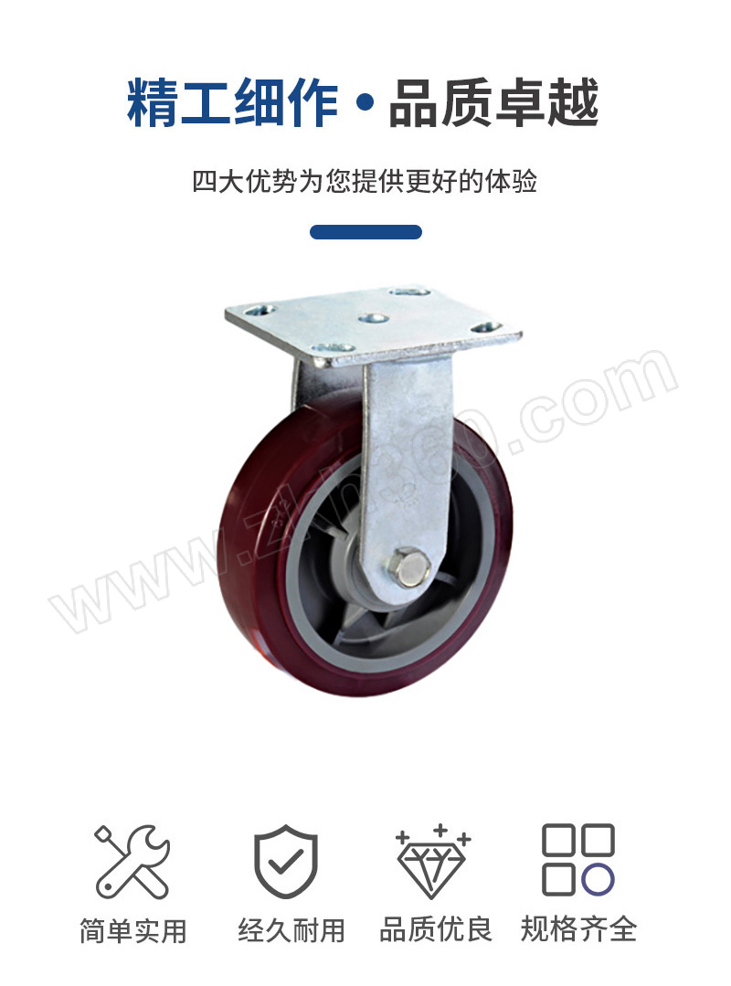 | 核心规格 | 轮径100mm 轮宽50mm 安装高度142.9mm 底板尺寸115×100mm |