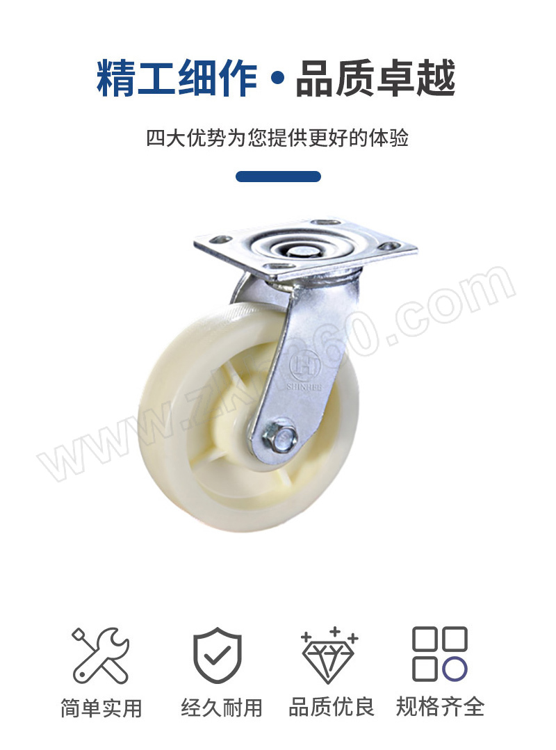 | 核心规格 | 轮径100mm 轮宽50mm 安装高度142.9mm 底板尺寸115×100mm |