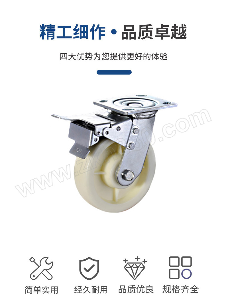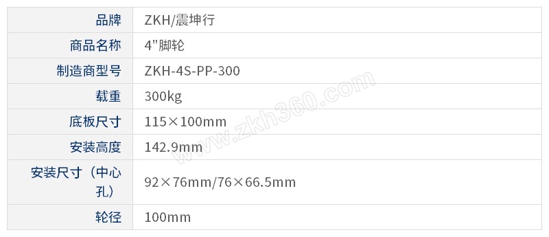 | 核心规格 | 轮径100mm 轮宽50mm 安装高度142.9mm 底板尺寸115×100mm |