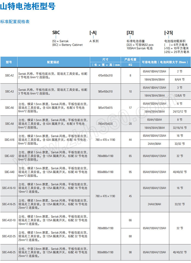 ·立柱、横梁1.5mm 厚度,Santak 风格。平板包装出货,现场无工具安装。含 125A 直流隔离开关,标配 32 节电池 6mm² 连接线