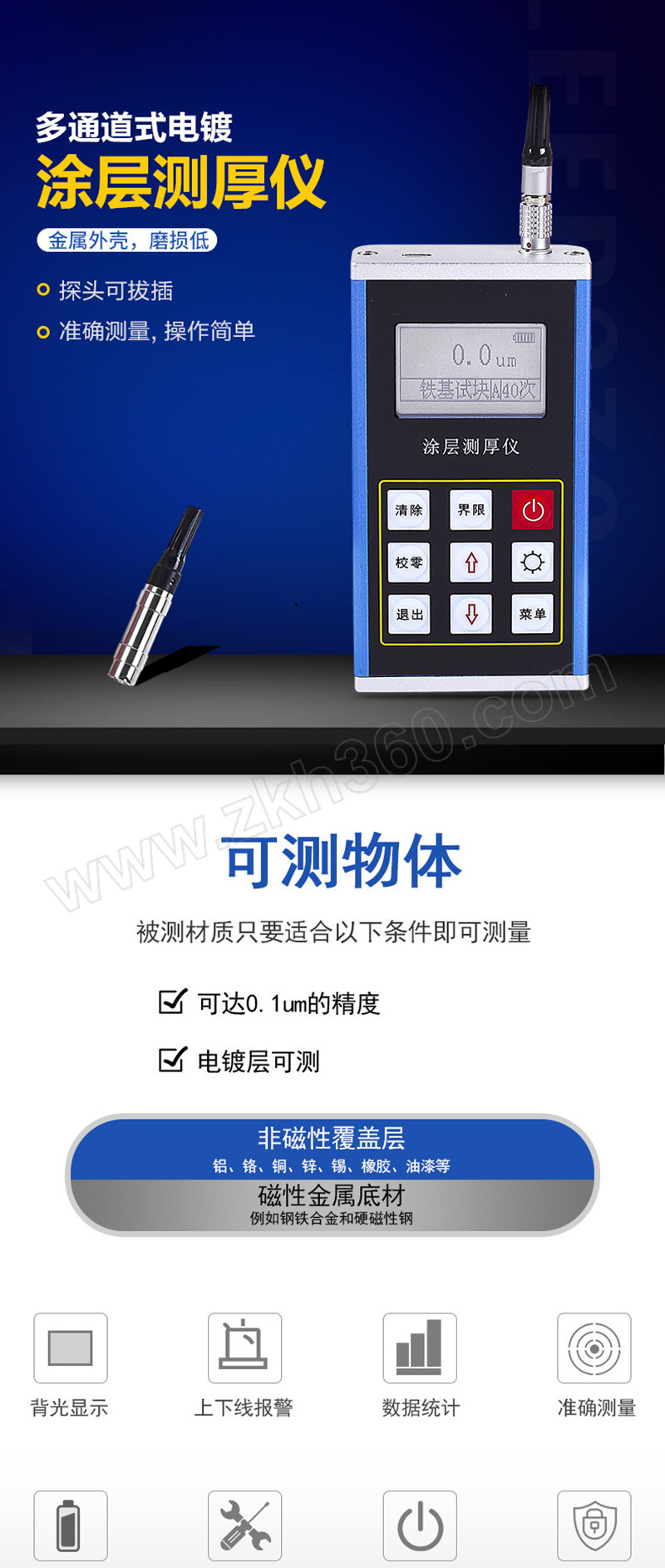 | 描述 | 采用磁性测量方法检测磁性金属基体上非磁性覆盖层的厚度 |
