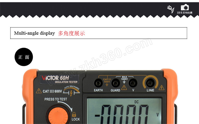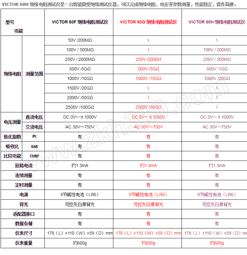 | 描述 | VICTOR 60H 绝缘电阻测试仪是一台智能微型绝缘测试仪器 成绝缘电阻 电压等参数测量 操作简便 |