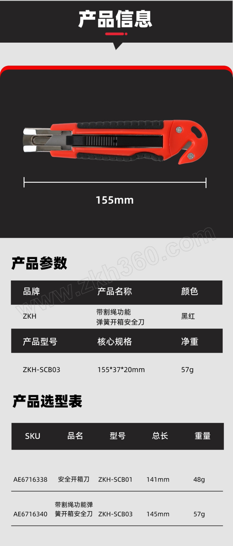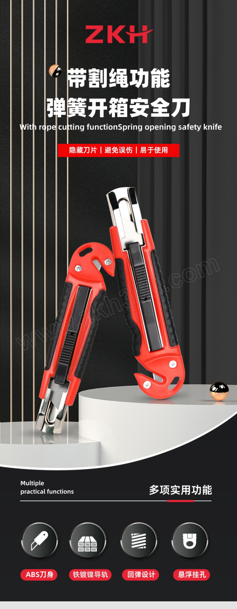 | 产品名称 | 带割绳功能弹簧开箱安全刀 |