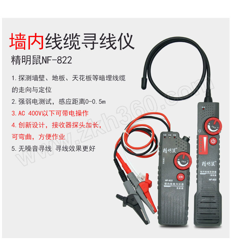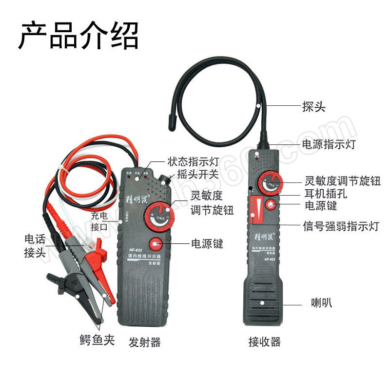·无干扰寻强弱电线,声音清脆,精准寻墙内地下天花板0.3至0.5米深的线路走向,长度达1000米,探头为可随意弯曲的蛇形管,可寻管道内线,灵敏度可调