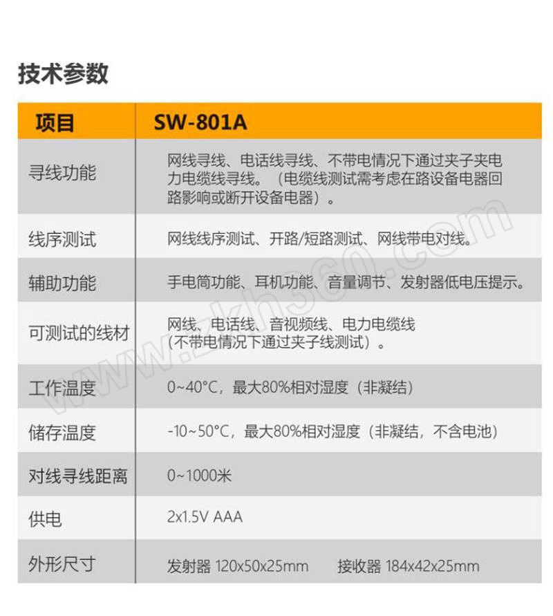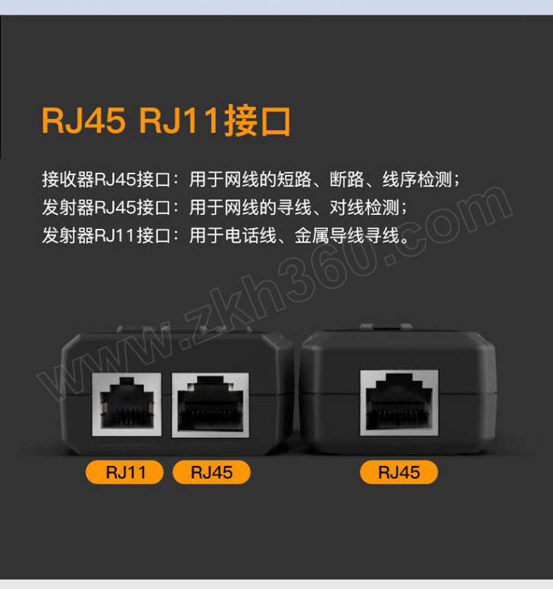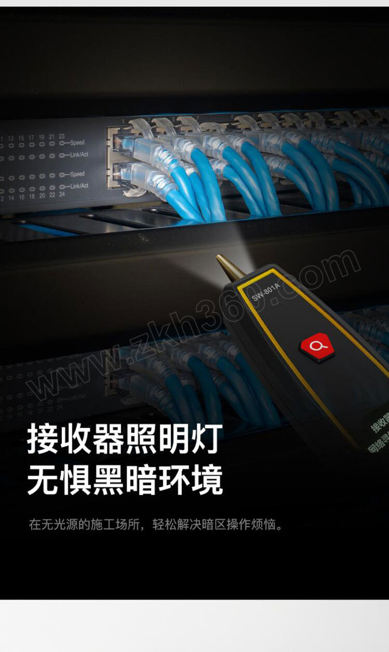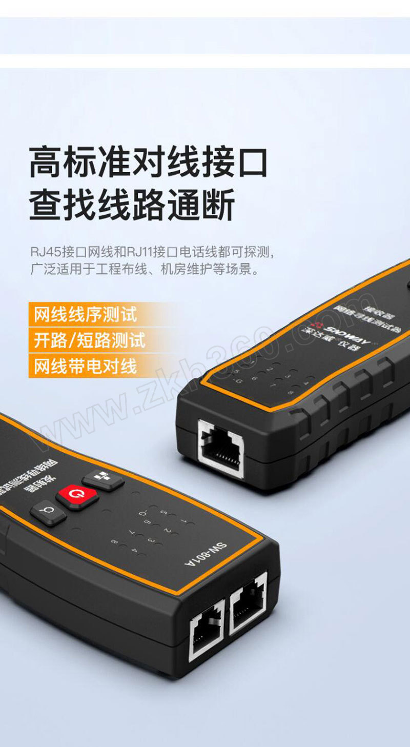 ·RJ45接口网线和RJ11接口电话线都可探测,广泛适用于工程布线、机房维护等场景。