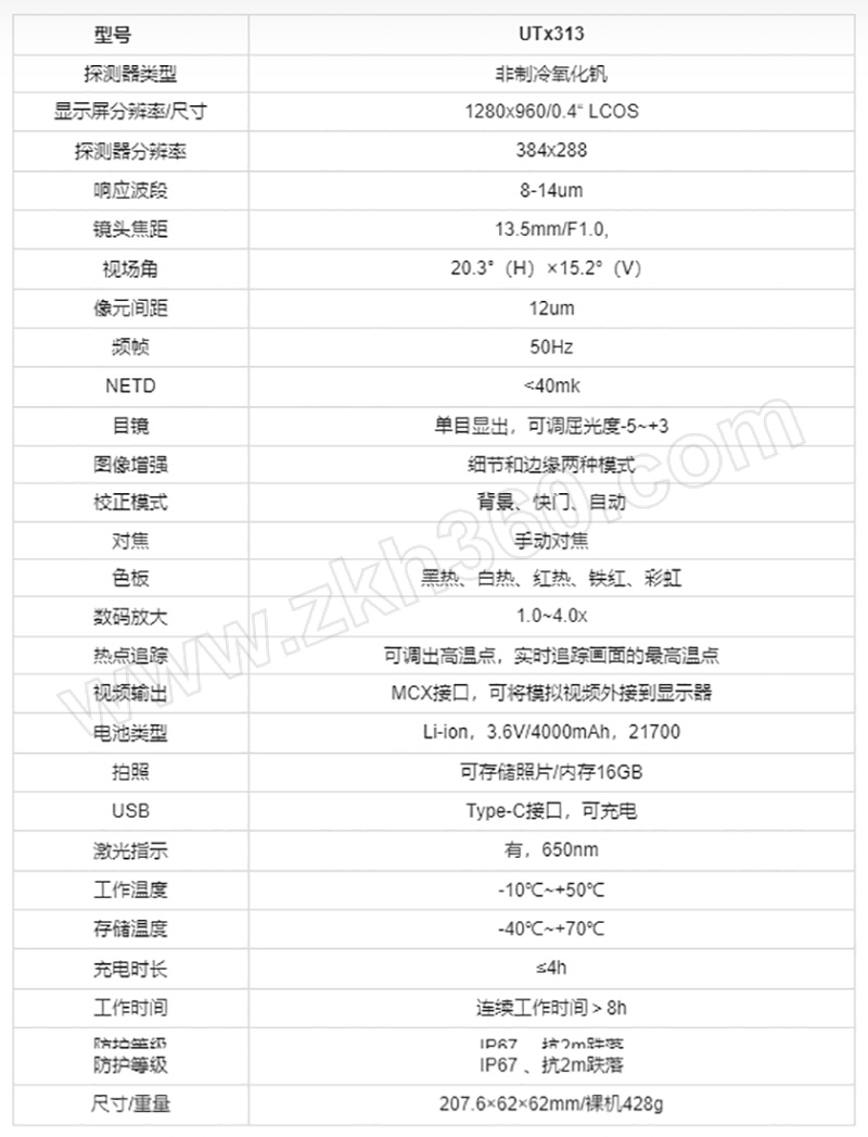 | 成像像素 | 384×288 |