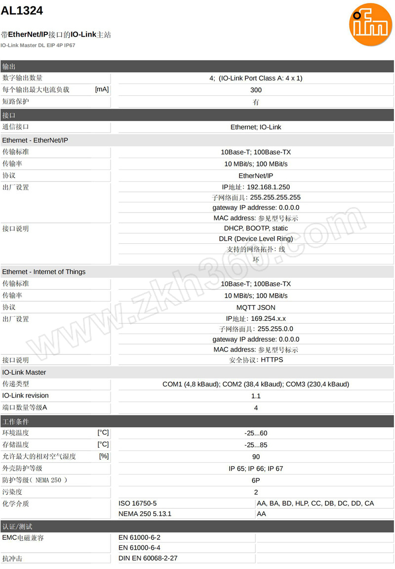 | 产品名称 | 带EtherNet/IP接口的IO-Link主站 |