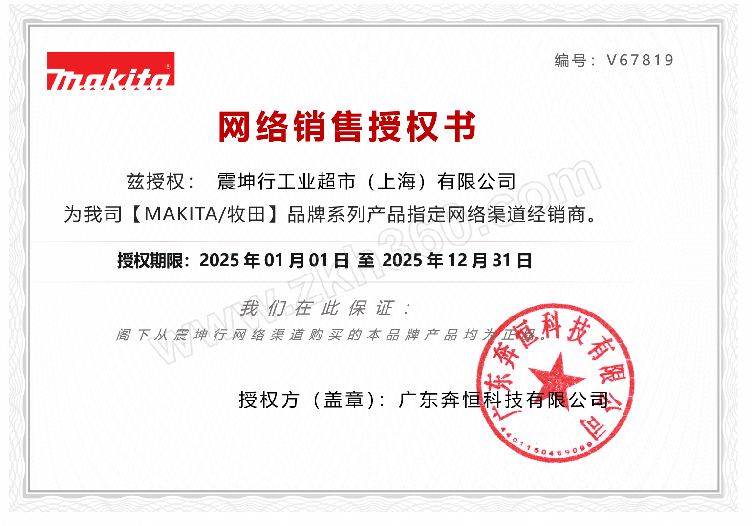 正品保证震坤行工业超市向您保证所售商品均为正品行货,开具正规发票。 | |