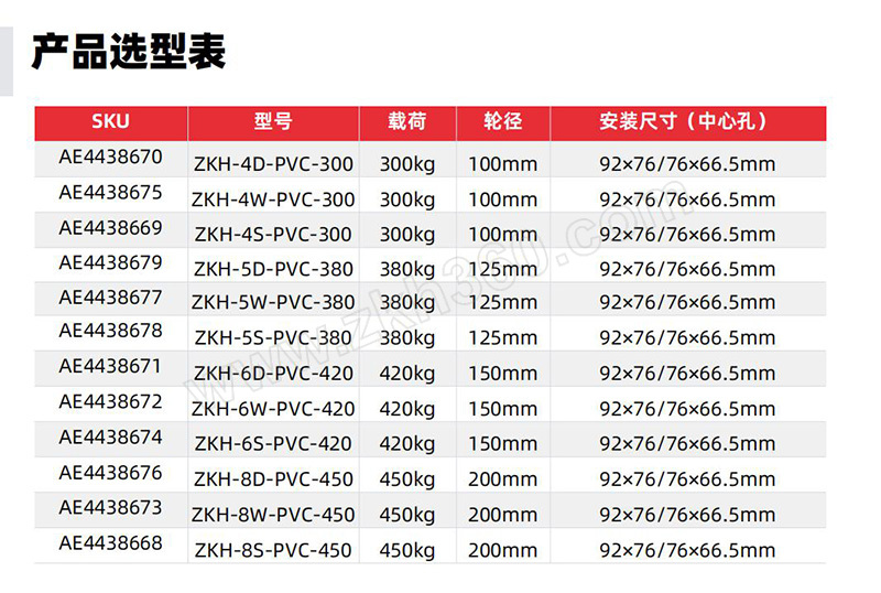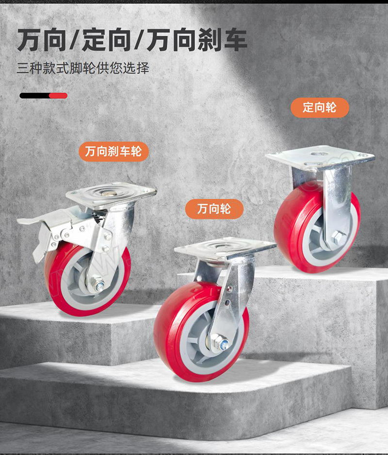 | 产品名称 | 5" 红色PVC 载重380kg 万向刹车 重型脚轮 |