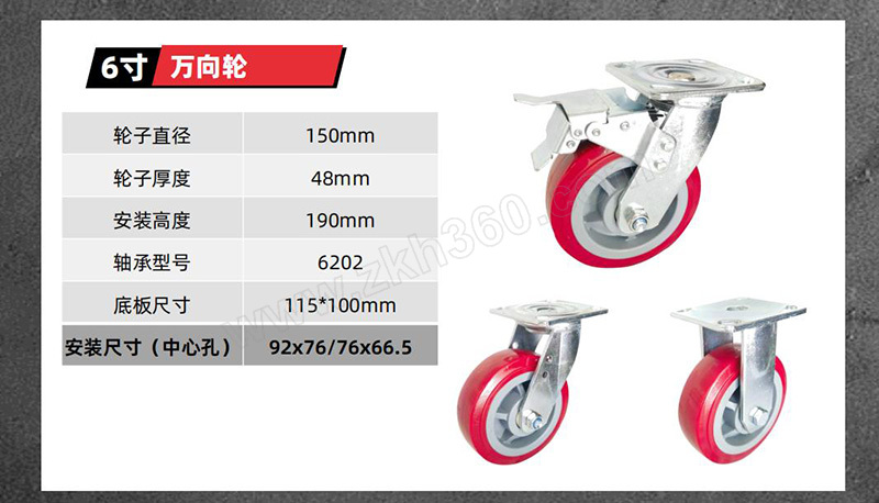 | 核心规格 | 轮径125mm 轮宽50mm 安装高度165.0mm 底板尺寸98×110mm |