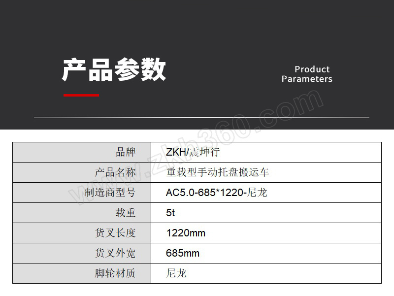 | 核心规格 | 额定载重5t 货叉外宽685mm 货叉长度1220mm |
