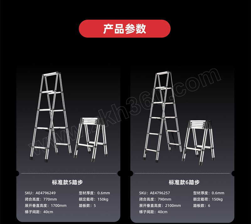 | 核心规格 | 5踏步 40cm间距 延伸高度1700mm 缩回高度770mm 载荷150kg |