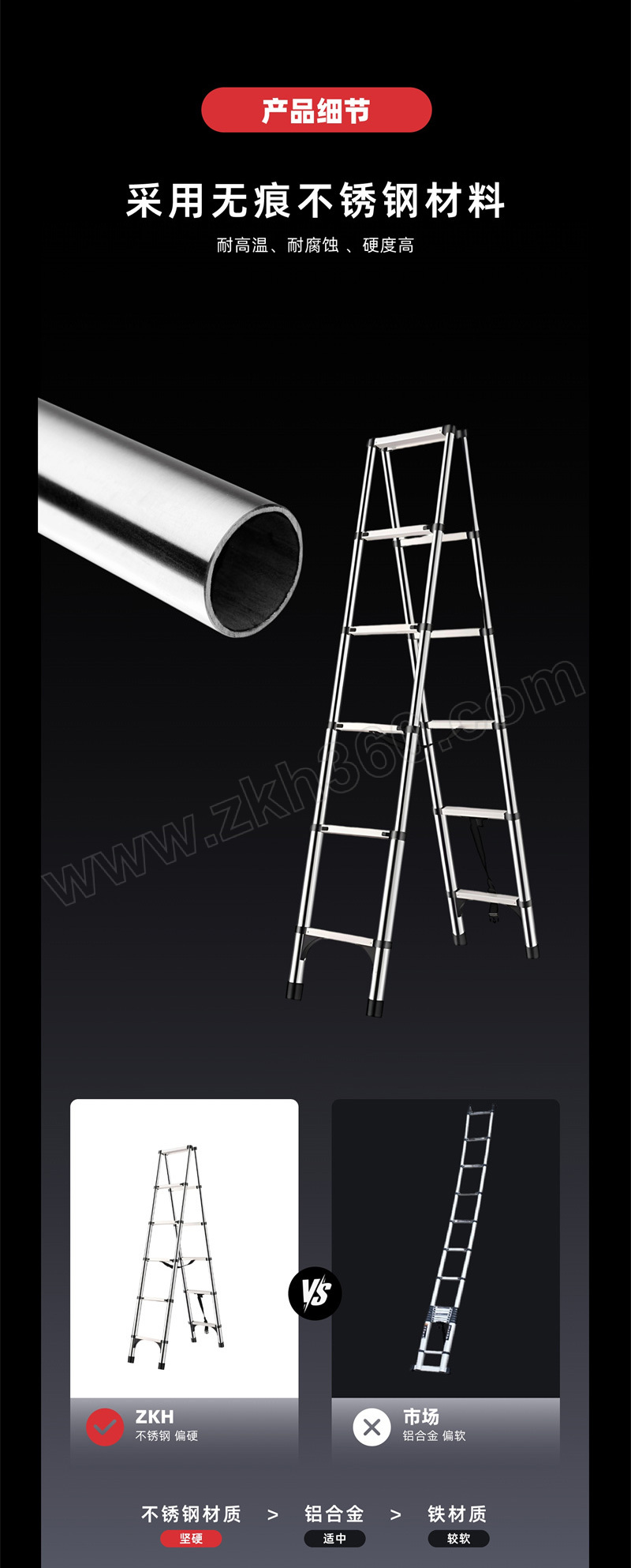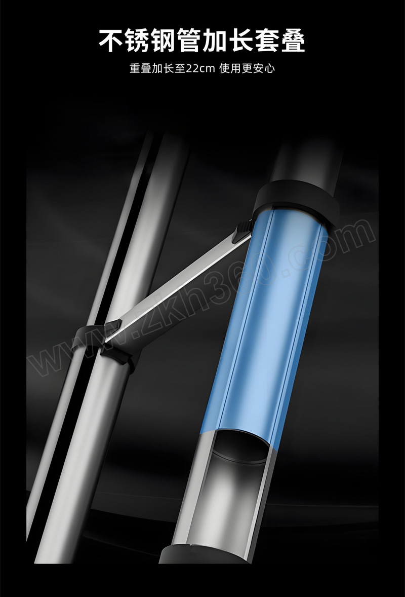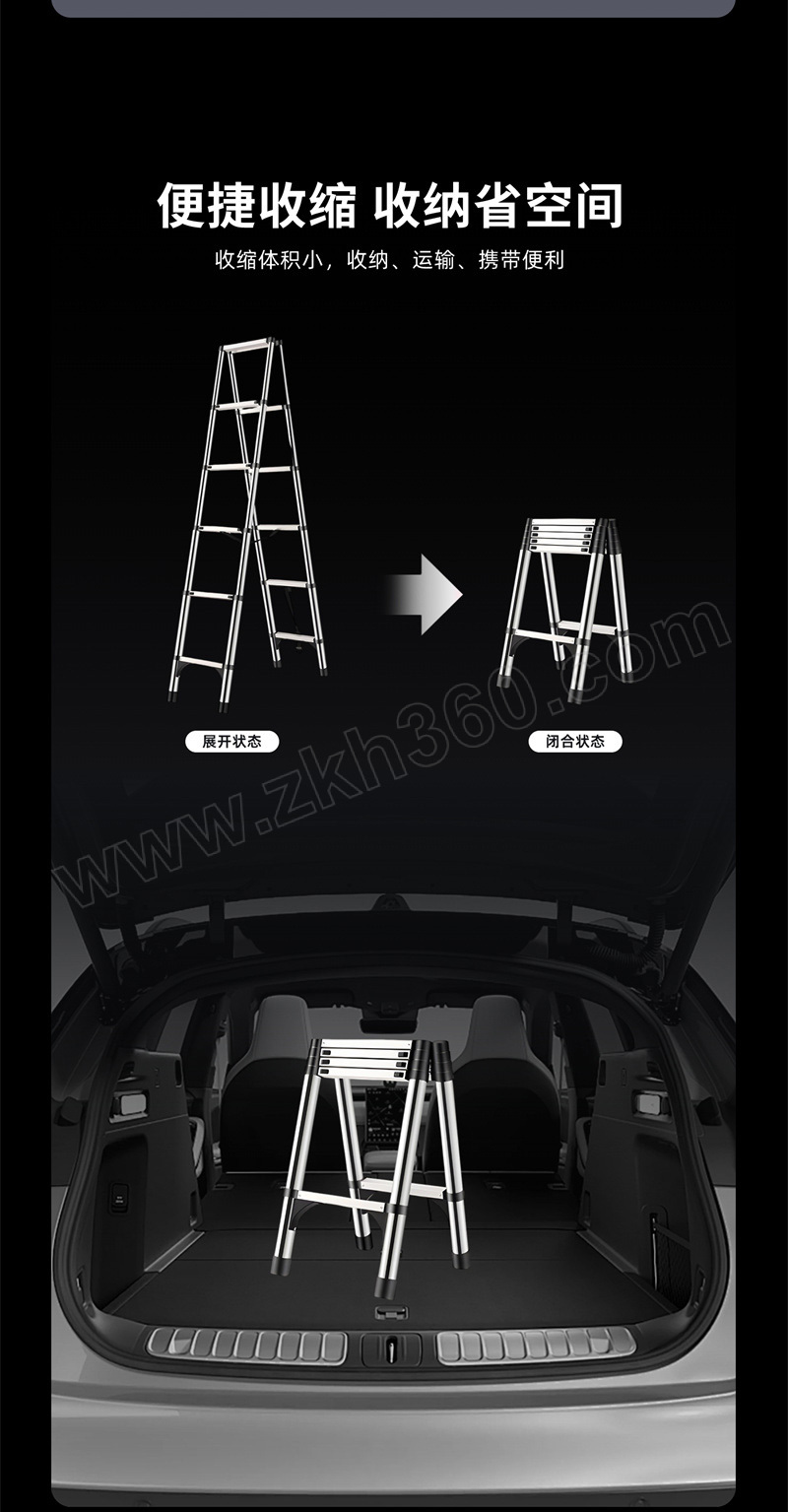 ·不锈钢材质,安全锁扣,防滑踏板,操作简单,伸长收缩,携带方便,收纳简单