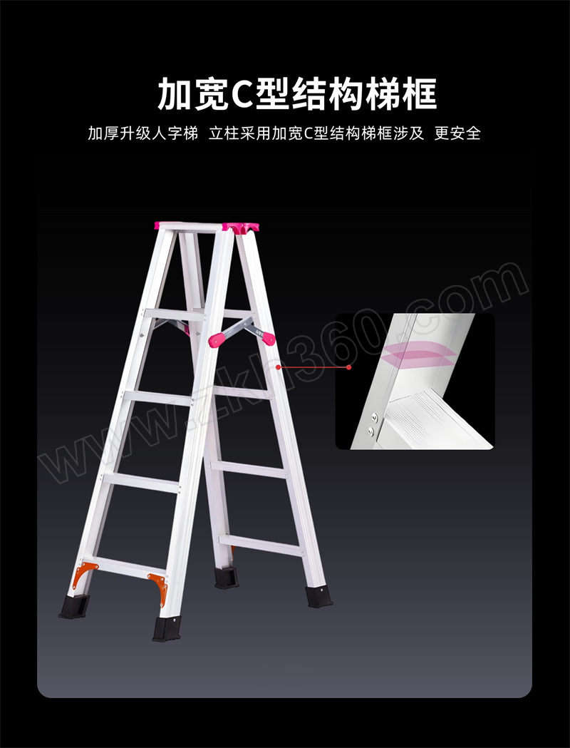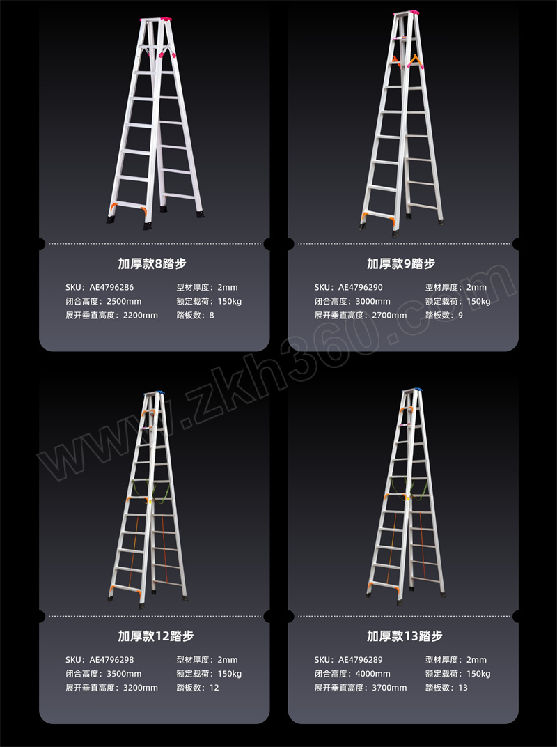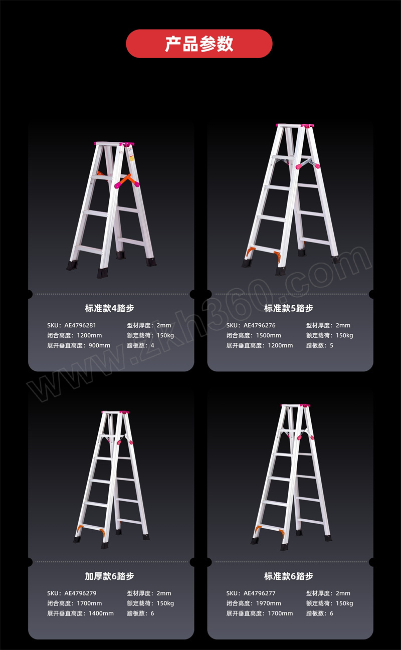 | 核心规格 | 铝合金C字梯 展开工作高度1200mm 收起高度1500mm 载荷150kg |