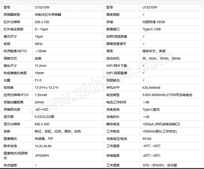 | 成像像素 | 256×192 |