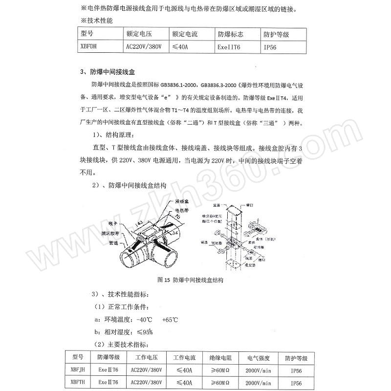 ·接线盒由接线盒体、接线端盖、接线块等组成。接线盒腔内有3块接线块,供220V、380V电源通用