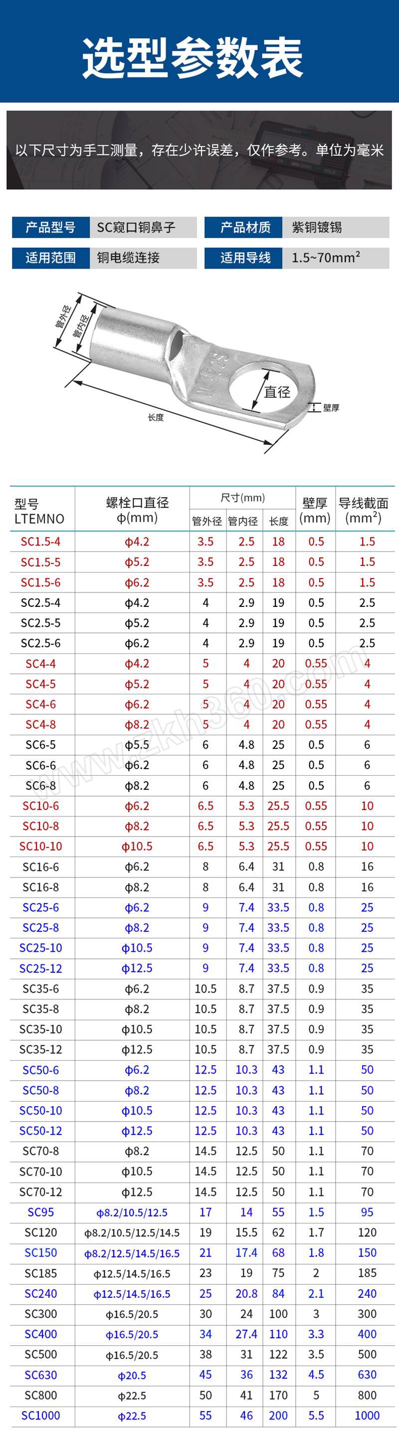 | 产品名称 | SC系列窥口接线铜鼻子 |
