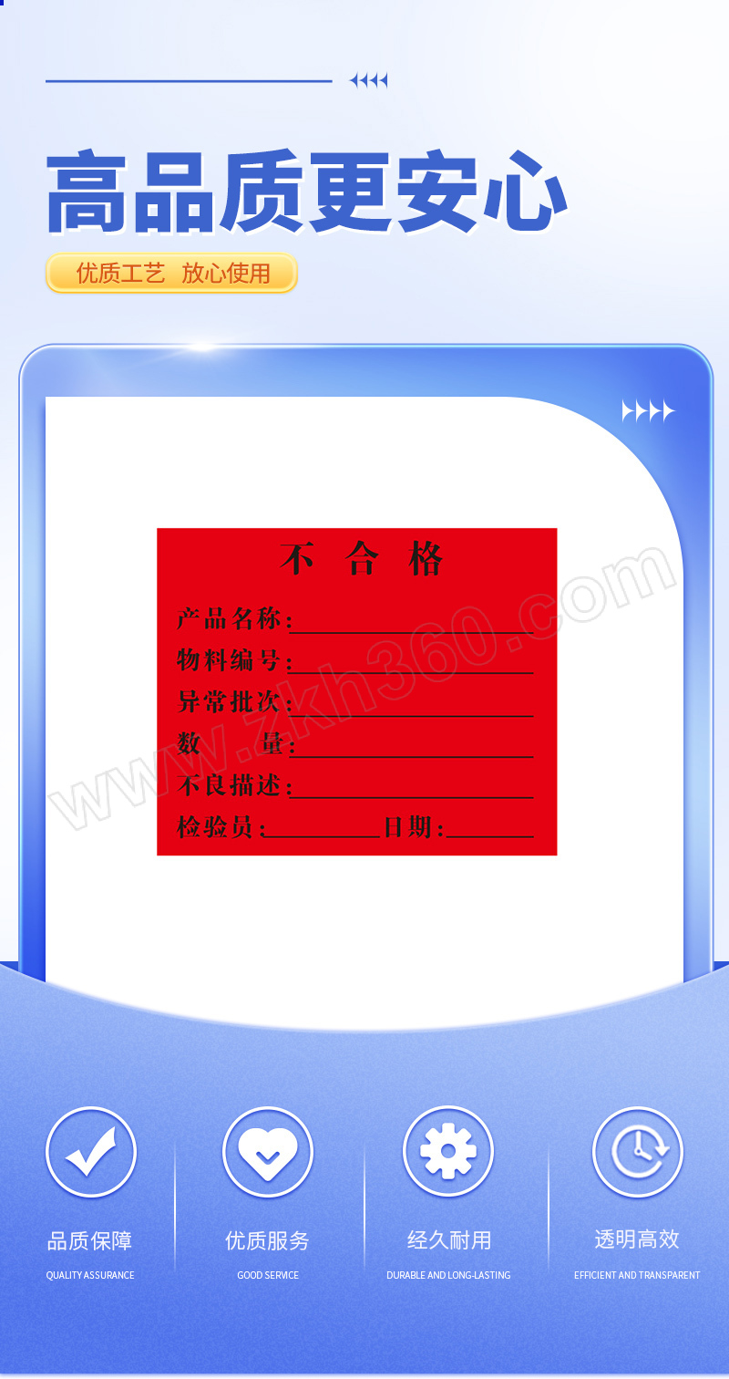 | 产品名称 | 书写纸标签不合格标 |