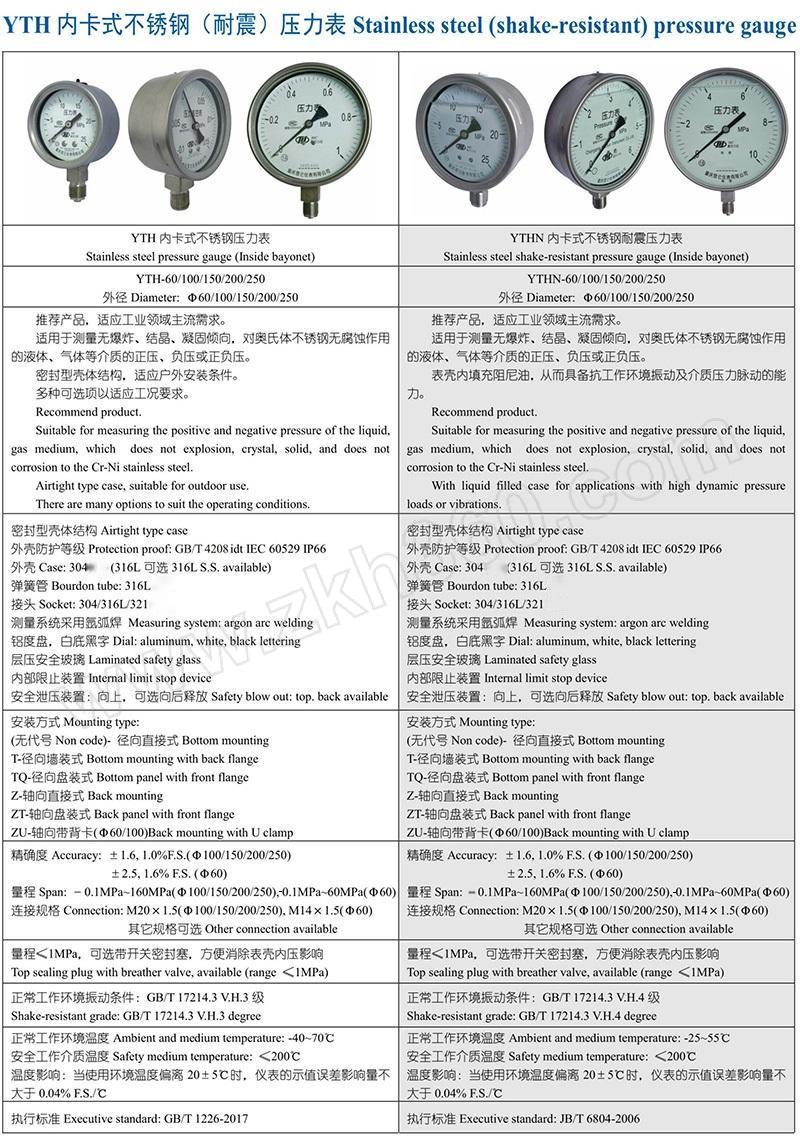 | 核心规格 | 100mm/0~6MPa/M20×1.5/表壳304不锈钢+接液304不锈钢/径向/1.6级 |