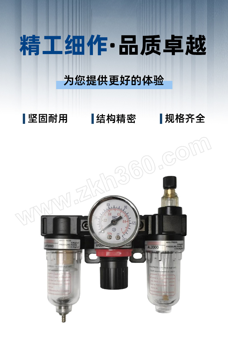 | 核心规格 | 过滤精度40μm 调节压力范围0.05~0.85MPa 接口PT1/4 差压排水 附压力表 附支架 |