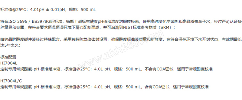 | 核心规格 | 25℃下pH标准值4.01 不含COA证书 500mL |
