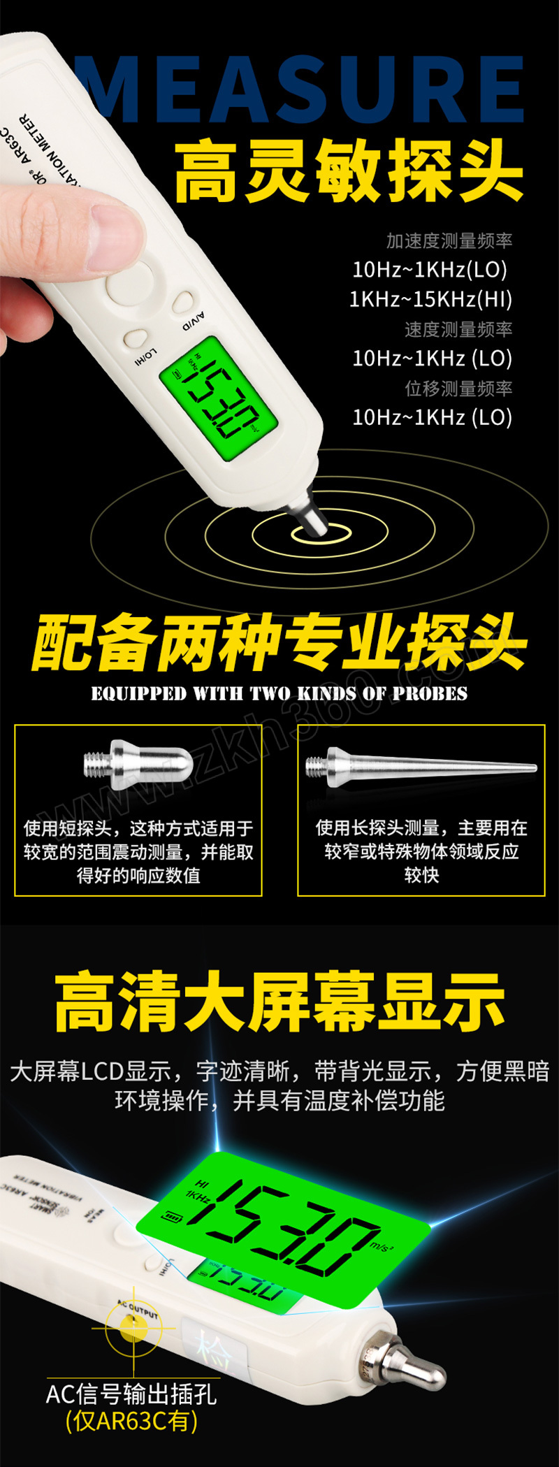 | 测试量程 | 0.1~199.9m/sec2,0.1~199.9m/s,0.001~1.999mm |