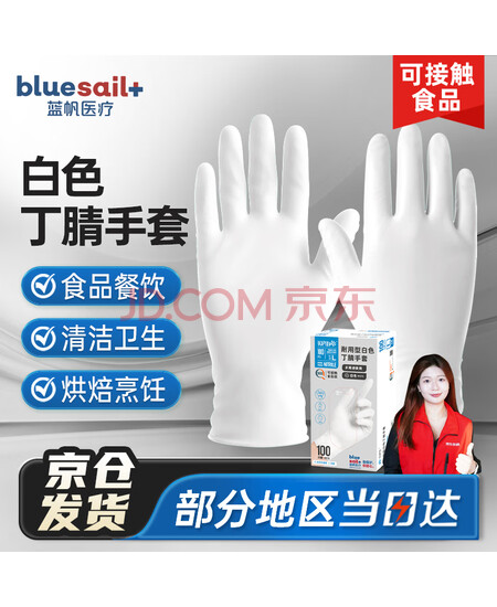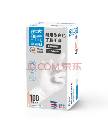 蓝帆医疗(blue sail+)手护佳一次性丁腈手套餐饮抽取式厨房家务洗碗烧烤便携手套 白色 100只/盒 大号L码
