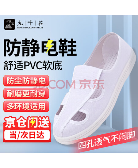 九千谷防静电鞋 四孔无尘鞋软底加厚 男女工厂无尘车间洁净室工作鞋 防臭帆布鞋劳保鞋小白鞋 白色PVC底 42